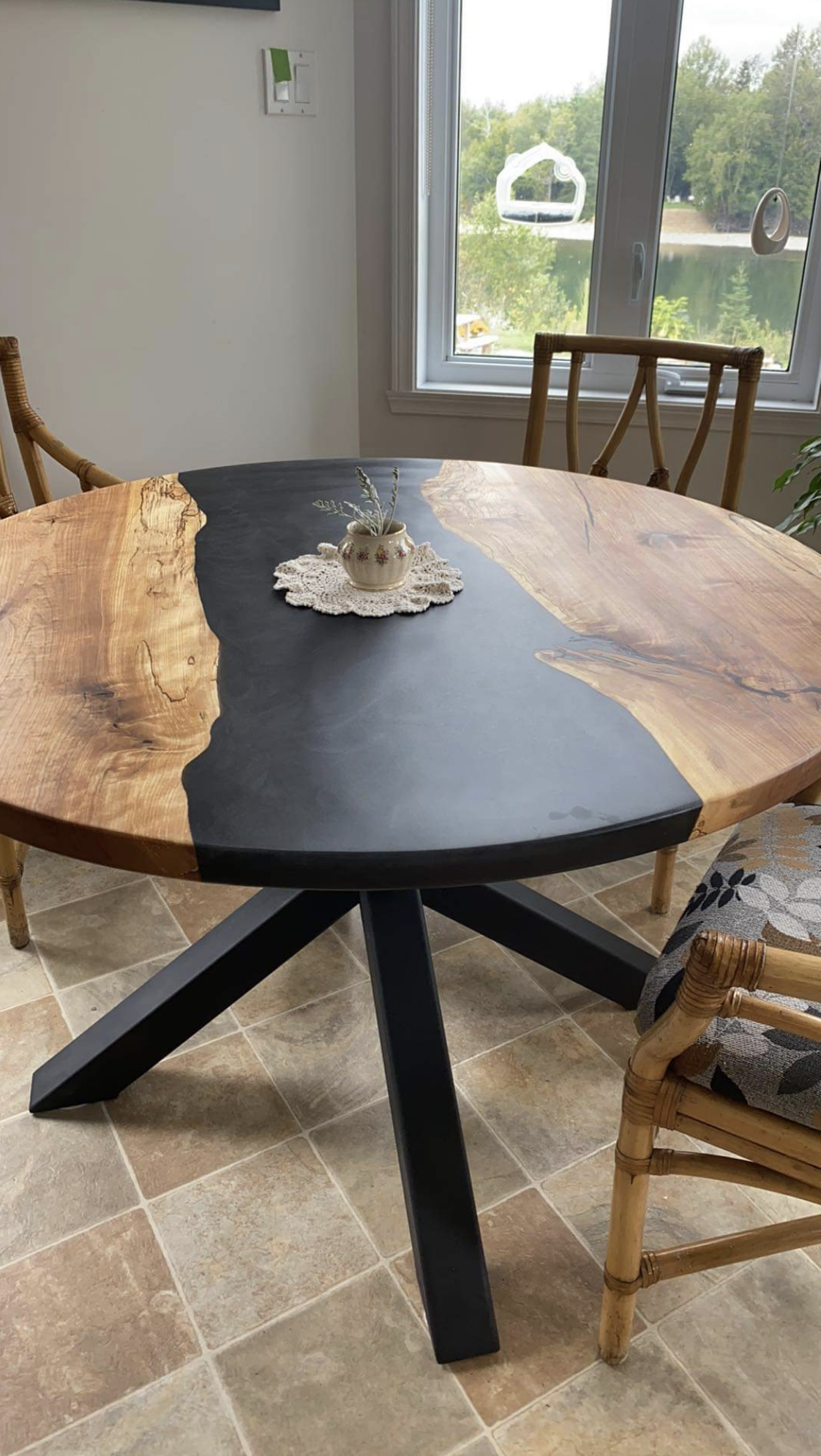 Commandez maintenant et découvrez la beauté et la fonctionnalité de notre table de salle à manger et table basse ronde en époxy noir