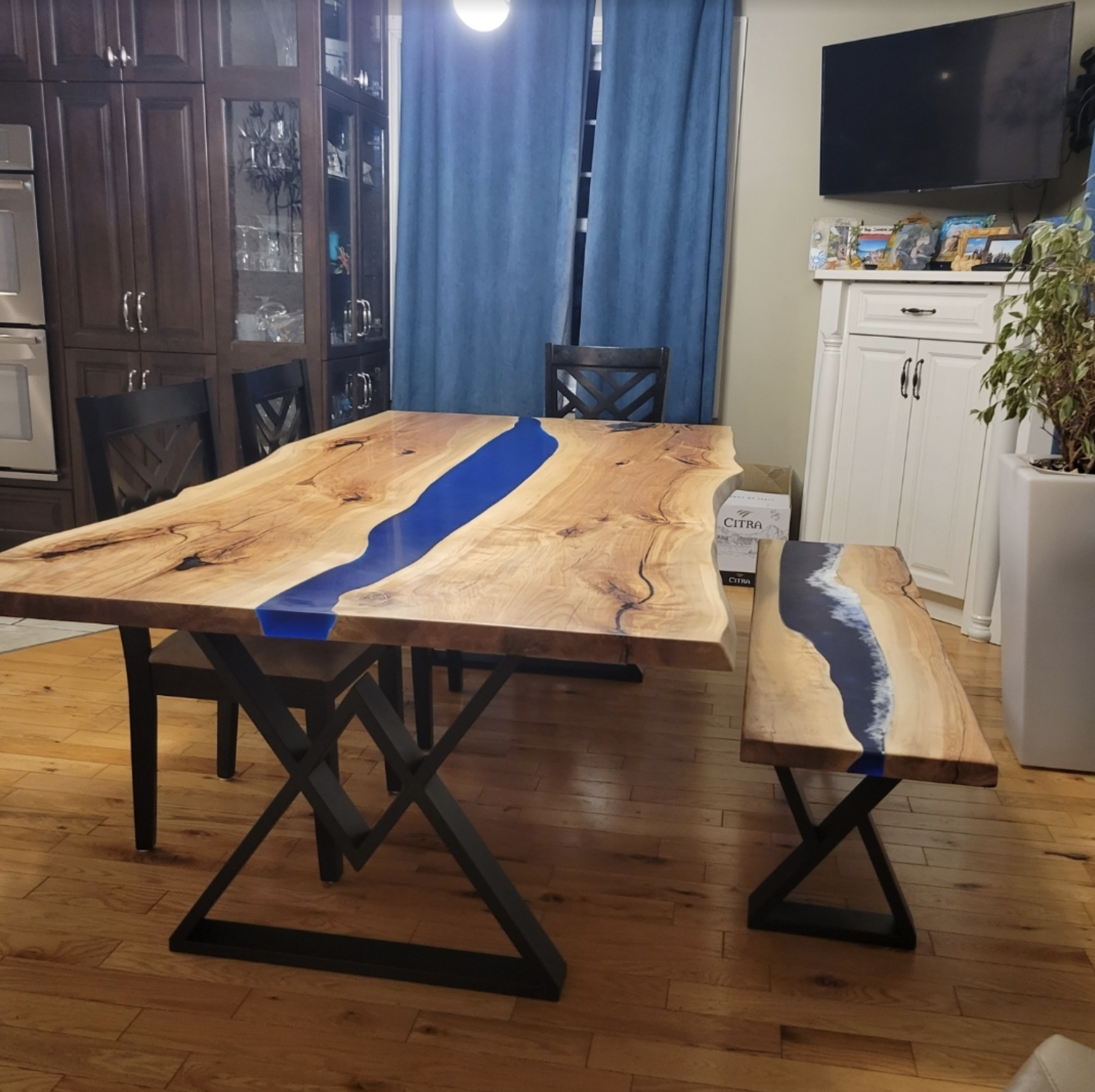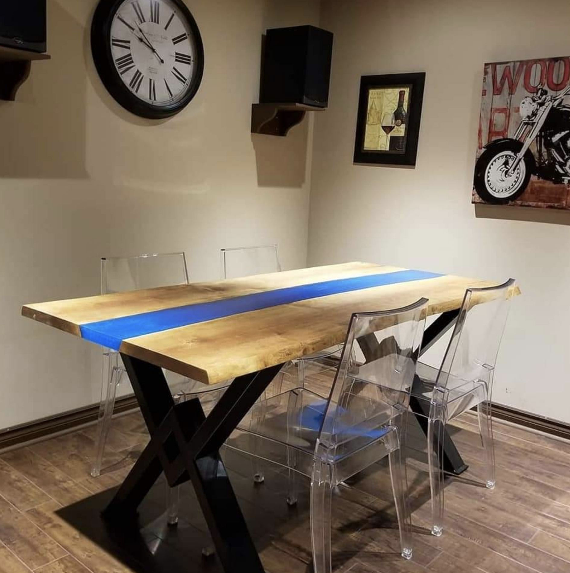 I bought a console table for my bathroom. Bobby is a true artist, he made it exactly to my specifications and the blue “river” reminds me of the Caribbean sea, he got the color just right. The table is solid and beautifully crafted, I wouldn’t hesitate to recommend Epoxy River for any artisan furniture needs.