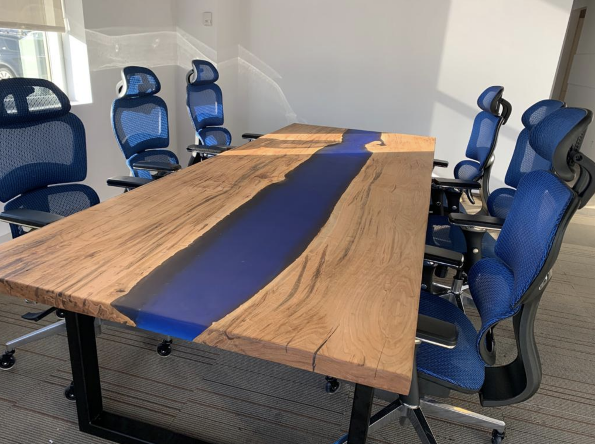 En collaboration avec “La Poche Bleue”, Epoxy River est fier d’avoir conçu une table à la couleur de l’identité de ce projet de Guillaume Latendresse et Maxime Lapierre.