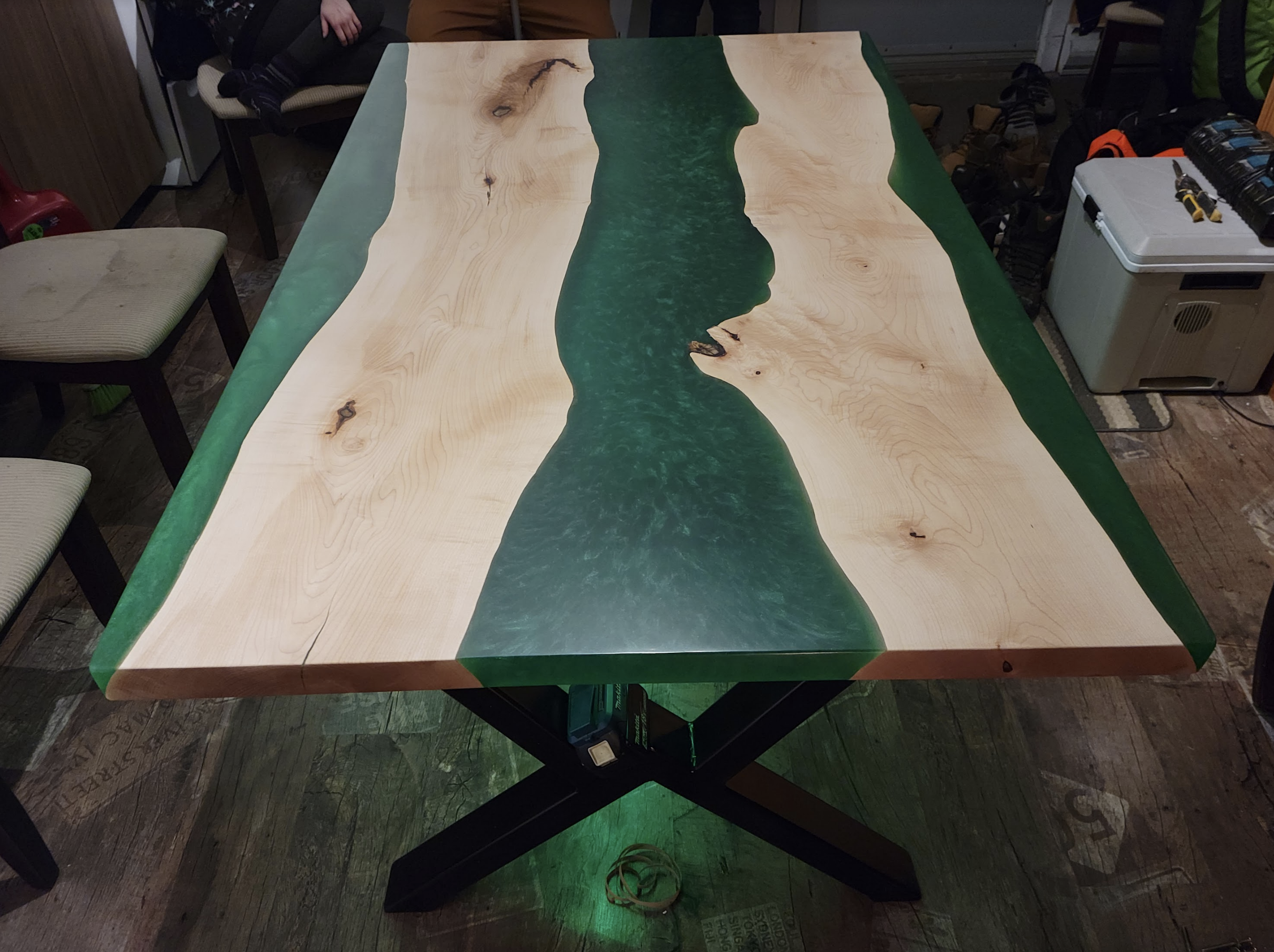 Cette table en epoxy entièrement personnalisée fut conçu à partir de matériaux de qualité supérieure 100% Canadiens et ce, dans les règles de l’art.